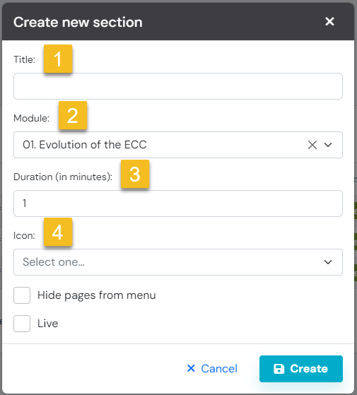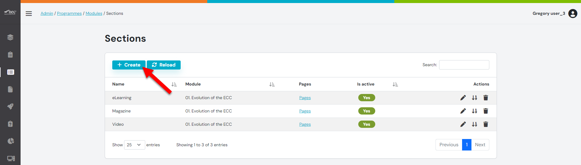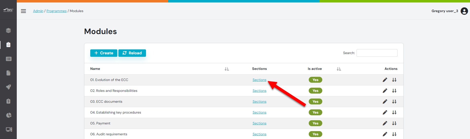 Step 1: From the Modules Tab, click the 'SECTIONS' button